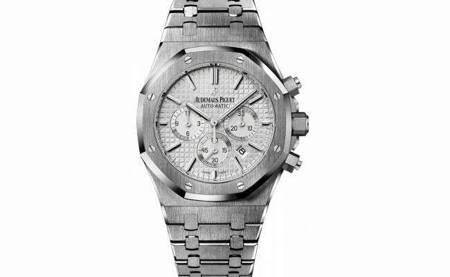 こちらは人気のロイヤルオーク クロノグラフのシルバーダイヤル。 今までのスポーツモデルは黒文字盤が人気なんですが、今のロイヤルオークはこのシルバーも人気です。 41mmというサイズもこうして見ているとそんなに大きく感じなくなってきました。 慣れと言うのでしょうか、普段から大きいサイズを着けている方はこのくらいは無いとダメなのかも知れません。