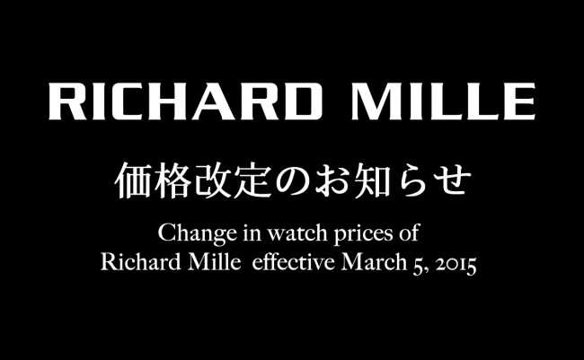 Due to the recent drastic Weaker Yen, Richard Mille Japan decided to raise the price for Richard Mille Watches by more than 10% or around 10%.(It will be officially announced at SIHH2015.)